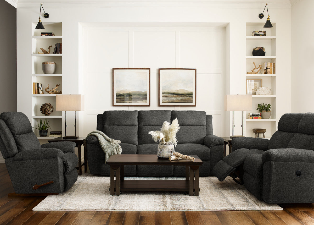 The Joel Reclining Sofa is sure to become a favorite spot! Flared arms topped with generously cushioned arm pads call out for leisurely naps. Kick back the plush reclining chaise seats on either end--reading or watching the game never felt so good!
